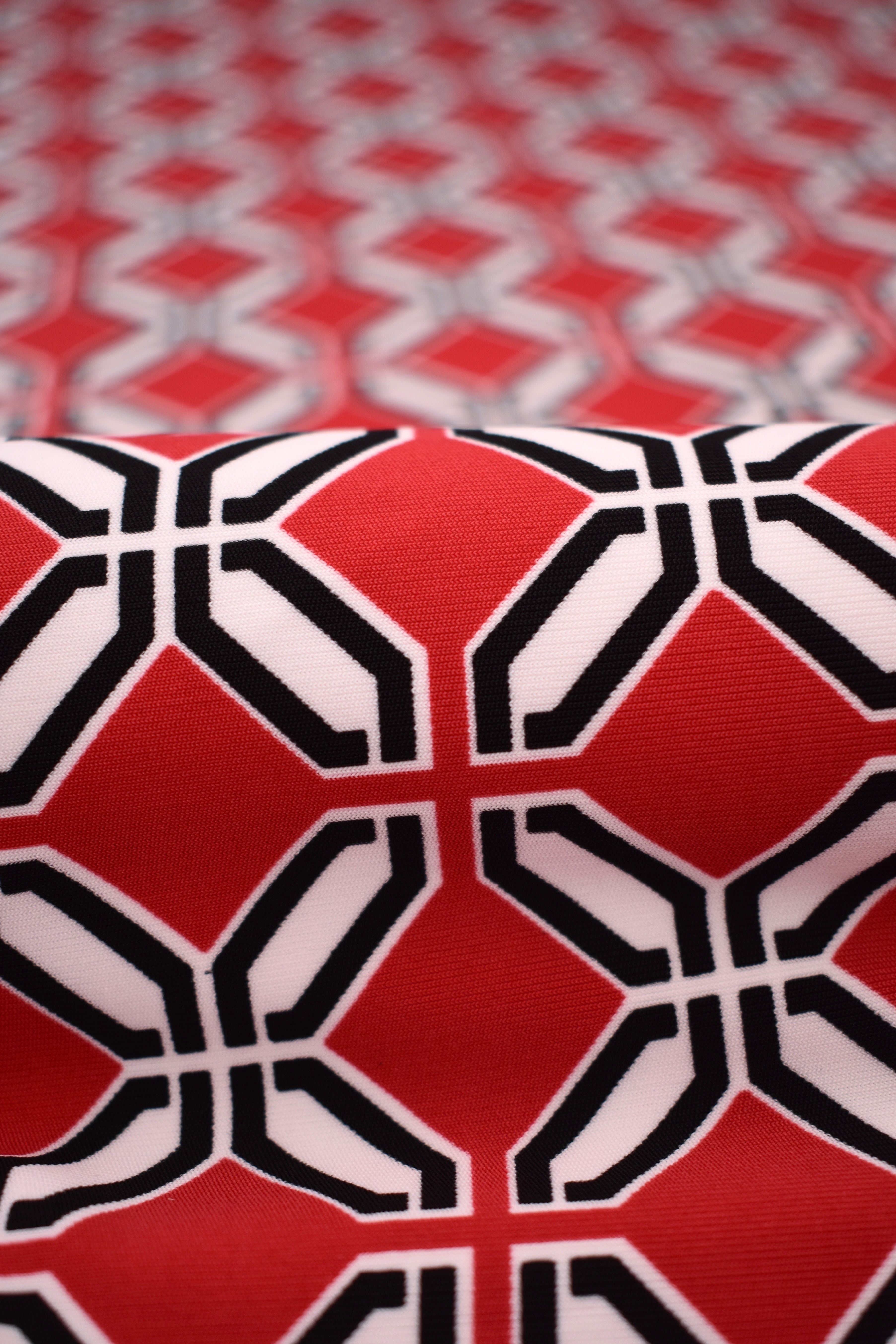 Jersey de viscosa estampado con patrón geométrico elástico