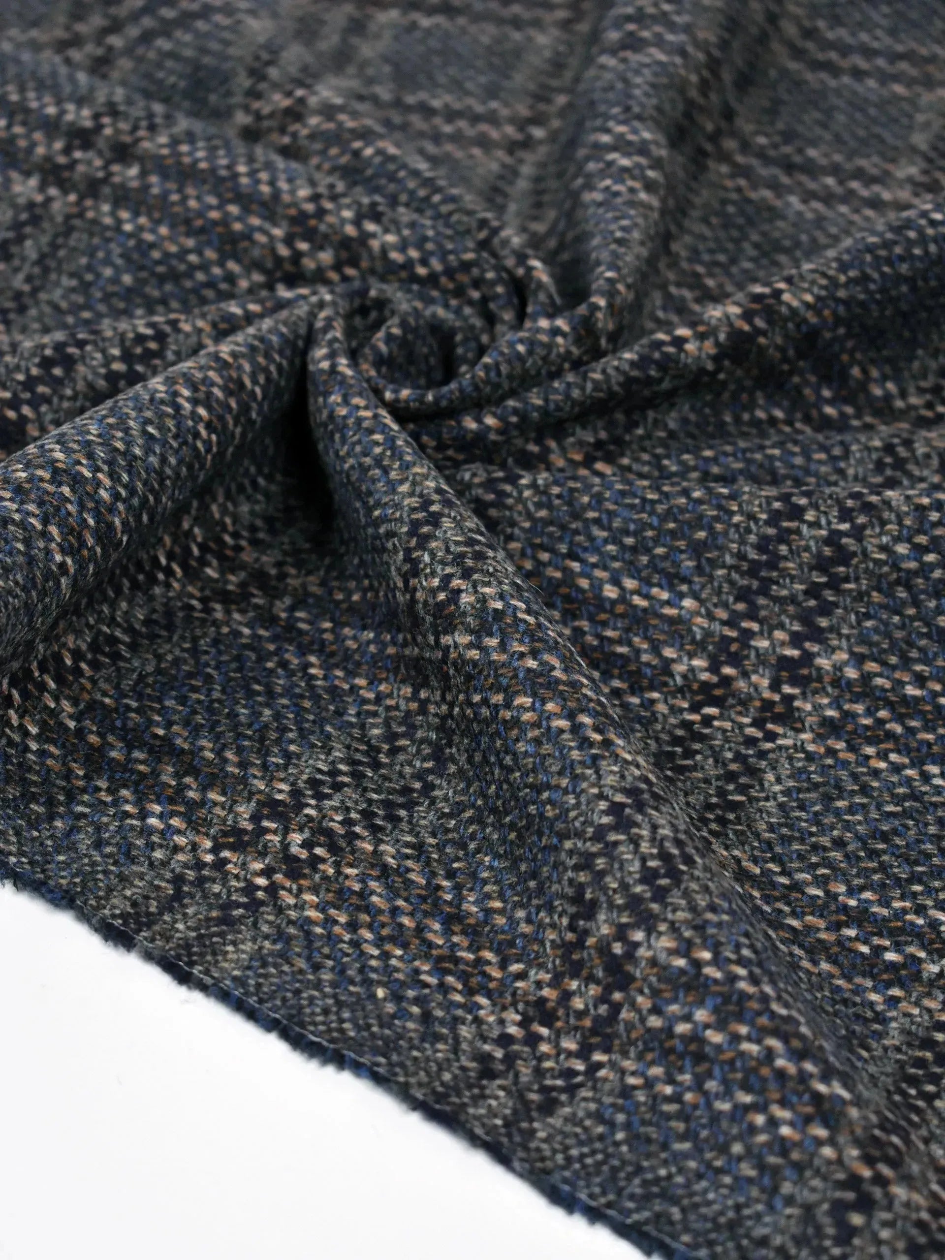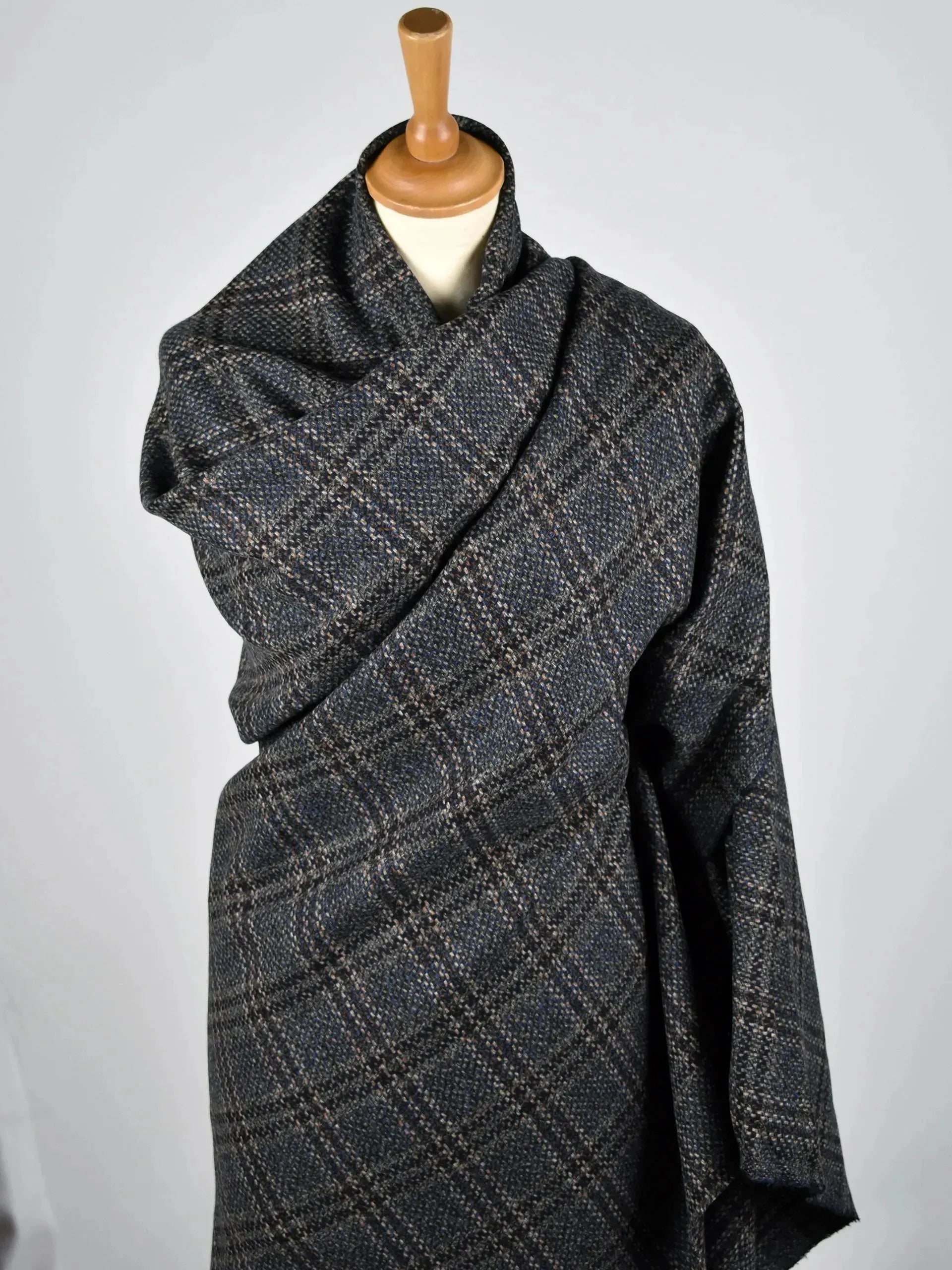 Tartan en laine mélangée cardée bleu