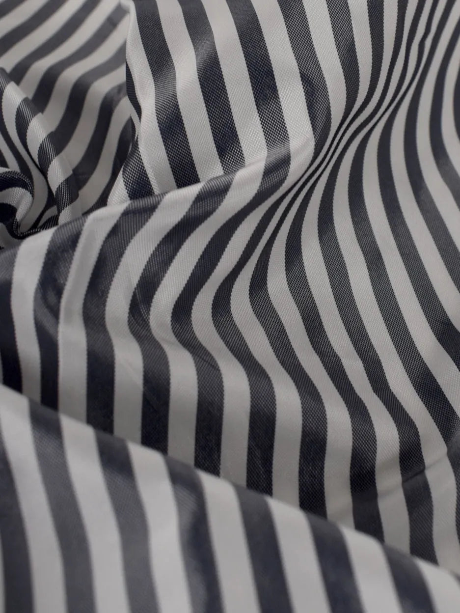 Questo tessuto si inserisce perfettamente nella sottocategoria delle fodere in viscosa e cupro. La sua consistenza liscia e la sua capacità di cadere con grazia rendono questo tessuto ideale per l'uso come fodera in pezzi di abbigliamento. La fodera in cupro a righe può essere utilizzata per aggiungere un tocco di raffinatezza a giacche, cappotti, gonne e pantaloni, migliorando sia l'estetica che il comfort del capo.