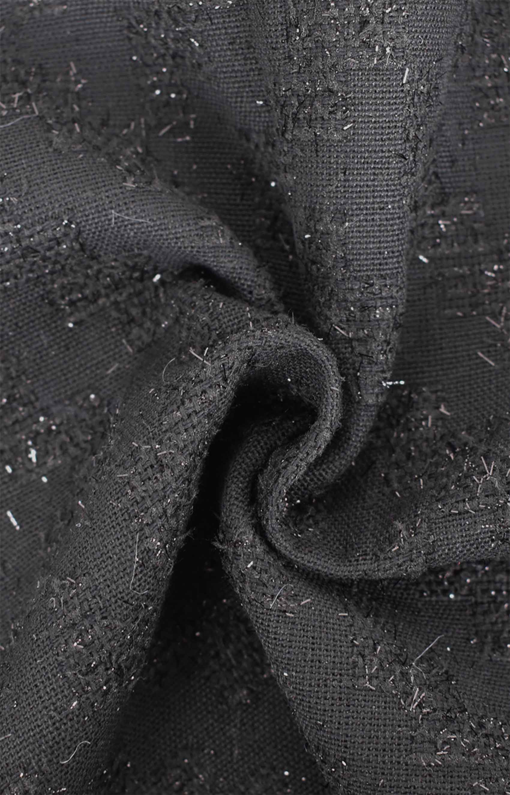 In base alla sua sottocategoria, il Tweed misto cotone e viscosa con lurex è ideale per l'abbigliamento. Grazie alla sua struttura robusta e al suo aspetto raffinato, si presta particolarmente alla realizzazione di capi come giacche, cappotti e gonne.